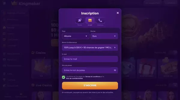 Commencer sur Kingmaker Casino est simple : ouvrez la page d’accueil et choisissez le bouton d’inscription en haut de l’écran. Vous verrez un court formulaire qui demande les informations essentielles nécessaires pour créer votre compte et confirmer votre identité plus tard. Après l’envoi du formulaire, nous pouvons vous demander une confirmation par e-mail ou par téléphone, selon votre configuration. Une fois votre compte actif, vous pouvez aller à la caisse pour effectuer votre premier dépôt puis réclamer toute offre éligible.